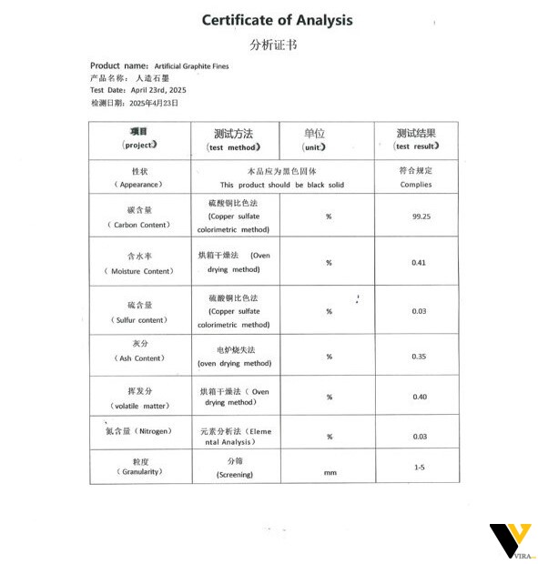 | Fixed Carbon | 99.0–99.5 | % | Determines effective carbon yield |